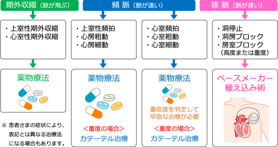 いずれも目的は不整脈の発生を抑えるなど、患者さまの不快感や不安をやわらげることです。