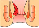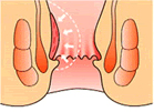 「脱出を伴う内痔核」にジオン注を投与して痔に流れ込む血液の量を減らし、痔を硬くして粘膜に癒着・固定させる治療法です。痔核を切り取る手術と違って、痔核の痛みを感じない部分に注射するので「傷口から出血する」「傷口が痛む」ということはなく、入院期間の短縮も期待できます。