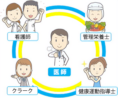 スタッフ達や管理栄養士、運動療法士等スタッフ一丸となって、チーム医療に努めています。