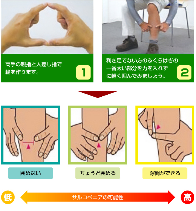 フレイルの大きな要因であるサルコペニアは、早期の発見が重要です。