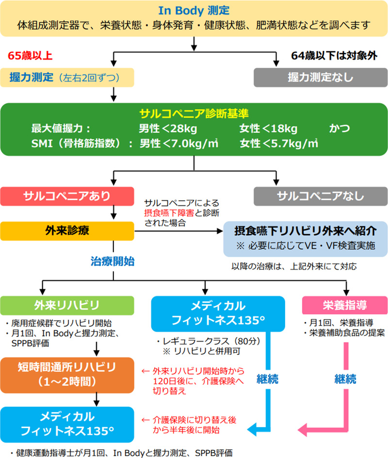 当院では、医師、看護師、薬剤師、管理栄養士、健康運動指導士、リハビリスタッフ、臨床検査技師などの多職種連携によるチーム医療で高齢者の方々の健康をサポートします。