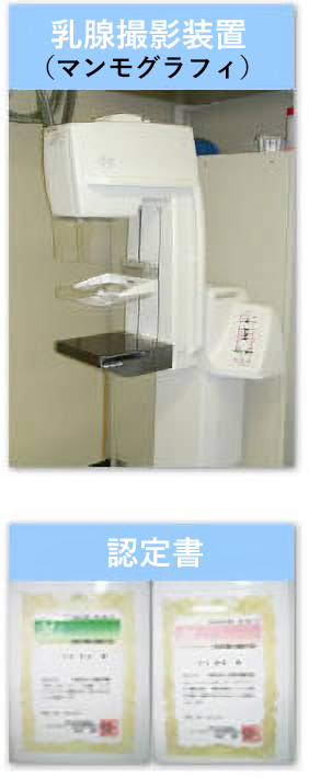 当院では「乳腺外来」を開設し、マンモグラフィ(乳房専用のX線写真)と乳腺超音波断層装置(乳腺エコー)を併用した検査を行っています。