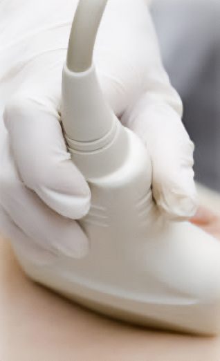 乳房にゼリーを塗り、体に超音波をあてて乳房の内部をモニターします。