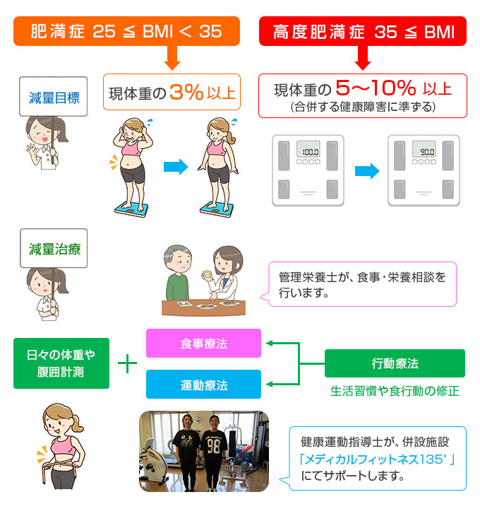兵庫医科大学、関西医科大学との連携による『肥満外科手術』と術後の指導を行っています。